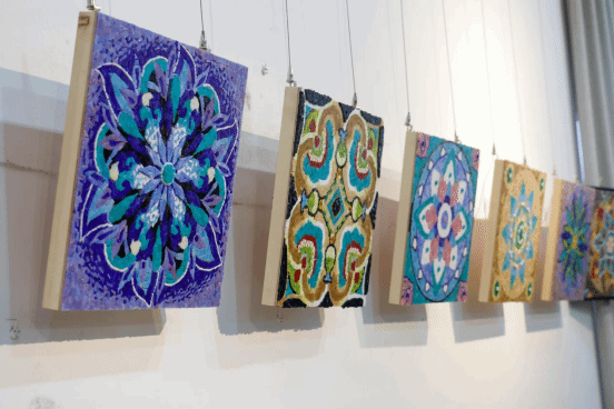 展览现场,作品琳琅满目,风格多样,充分体现了培训的丰硕成果。中国画单元,学员们将个人对自然与生活的感悟融入笔端,在一山一水、一花一鸟中探索课堂教学的诗意与情境创设,展现了传统笔墨的时代生机。水彩画作品则聚焦于“人文融合”,学员们用灵动的水色捕捉云岭大地的风土人情,作品充满了生活气息与情感温度,探索了美术学科育人、以美育人的有效路径。马赛克镶嵌艺术单元,学员们巧妙运用色彩斑斓的碎片材料,构建出充满现代感与装饰性的画面,展现了将综合材料引入课堂、激发学生创造力的无限可能。而坦培拉作品则以独特的材质美感和古典韵味,体现了学员们对多种艺术语言的钻研与掌握,拓宽了中小学美术教学的表现形式。