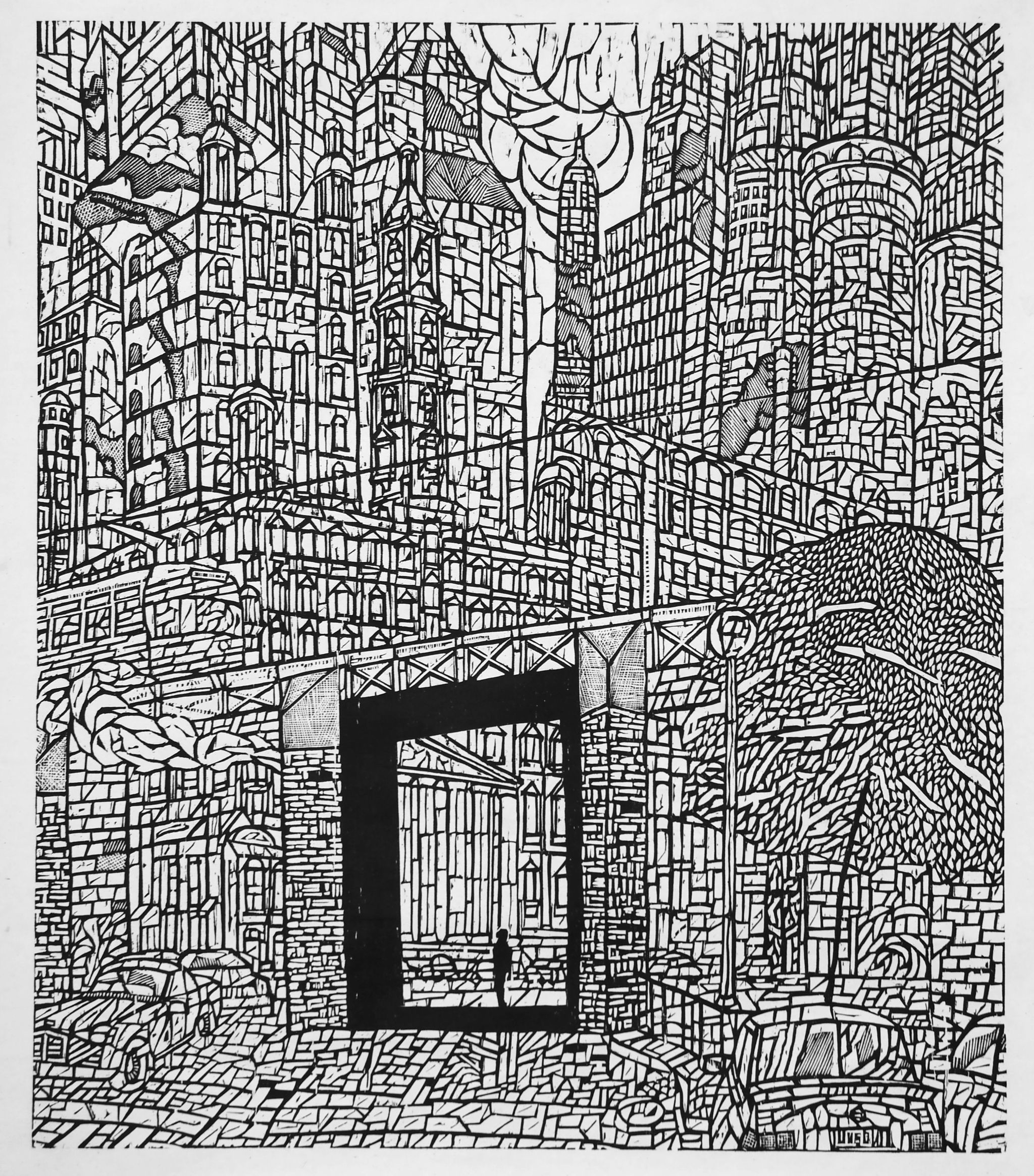 《孤独》黑白木刻60x70(cm)李小明2002年