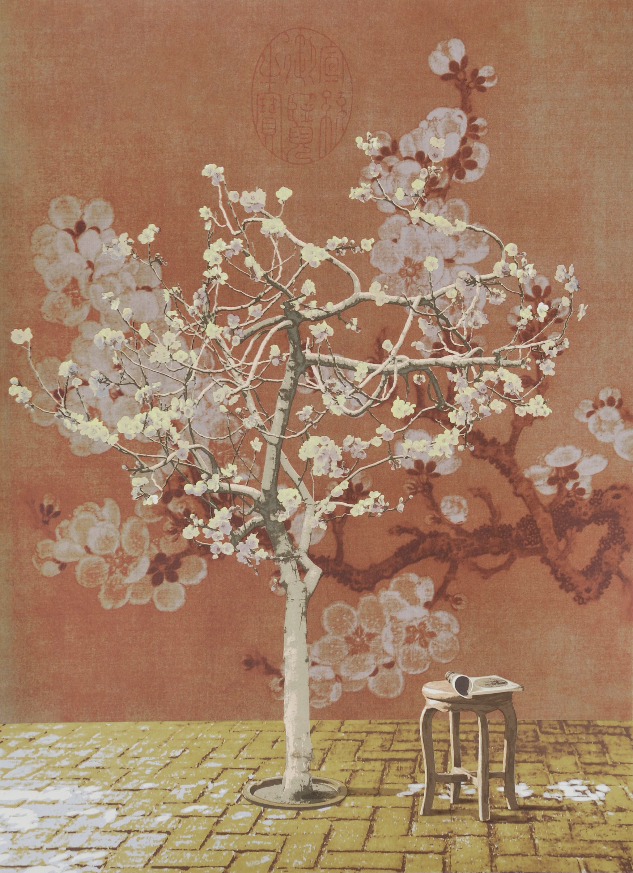 《花开花落·上下千年》丝网版画 80cm×60cm 张鸣 2014年