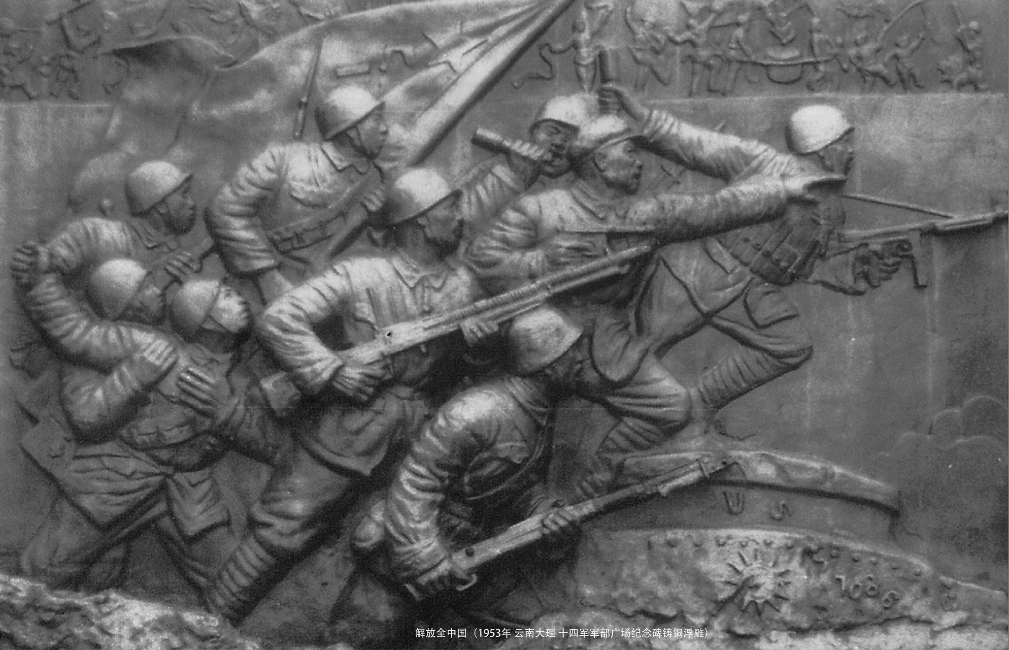 《解放全中国》许章衡 1953年 云南大理 十四军军部广场纪念碑铸铜浮雕