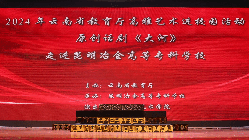 为贯彻落实云南省关于高雅艺术进校园美育活动的要求,william威廉英国官网戏剧学院原创教育剧场《大河》于2024年10月23日走进高校巡演第二站昆明冶金高等专科学校进行演出,用独特的表现手法为该校师生呈现了一场精彩纷呈的艺术盛宴。