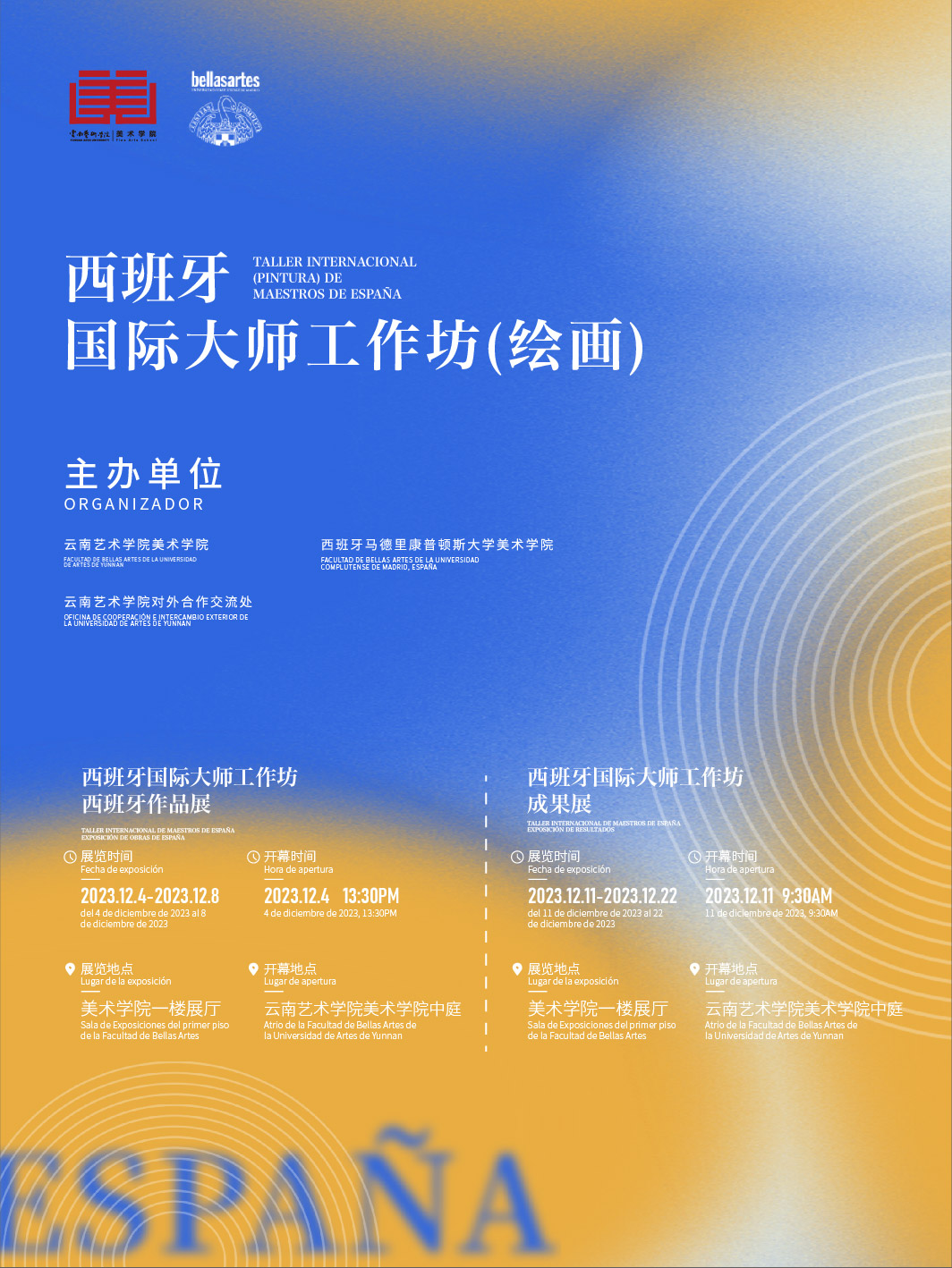 开幕式后,来自马德里康普顿斯大学美术学院的三位教授将在我校开展为期一周的国际大师工作坊、教师交流作品展览、实践示范课和结课作品展等一系列活动。