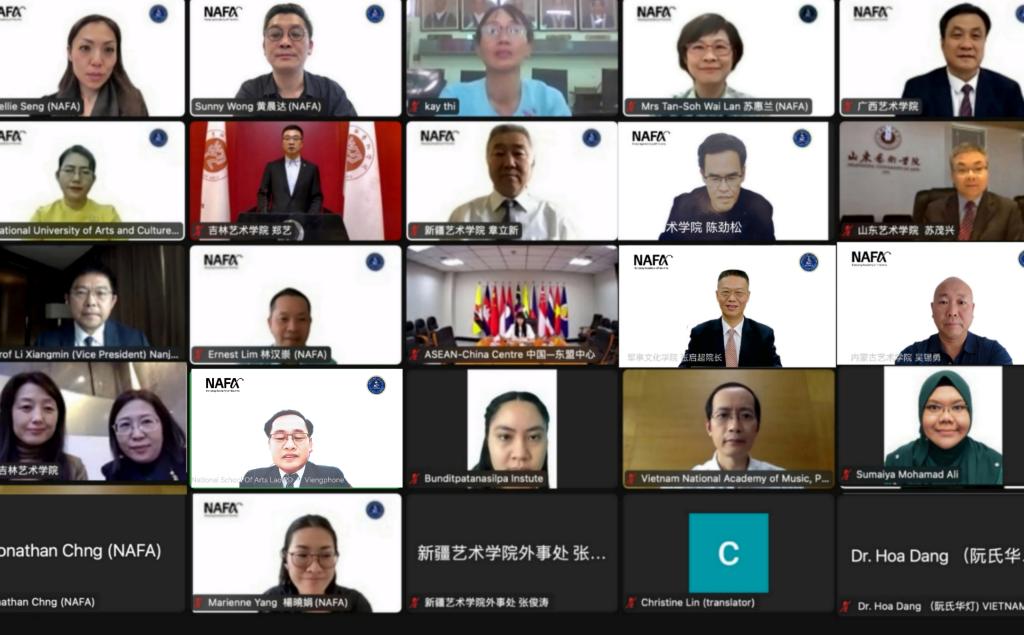 2022年10月28日下午,由中国——东盟中心、东南亚教育部长组织高等教育与发展区域中心和广西艺术学院主办、新加坡南洋艺术学院承办、广西艺术学院协办的“中国—东盟艺术高校联盟第三次成员大会暨 2022 年中国—东盟艺术院校校长圆桌会议”在线上正式举行。中国——东盟13所艺术高校领导参加此次会议。学校副院长陈劲松教授应邀出席校长圆桌会议,并代表学院致辞。
