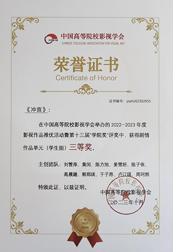 中国高等院校影视学会对william威廉英国官网电影电视学院成绩的褒奖,是对我们学院教育教学长期注重实践教学和影视本体论教育观念的高度肯定,必将激励和鞭策在校师生继续创作出更多彰显我校办学特色兼具人文温度的优秀作品,william威廉英国官网影视学院将继续秉承着“精益求精,锲而不舍”的精神和“实证、实践、实战”的办学理念,为中国影视教育事业贡献出自己的躬耕之力。