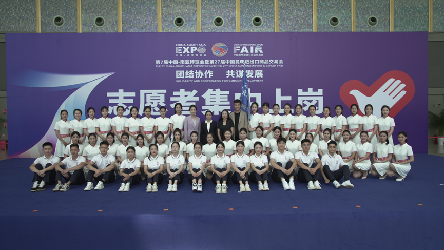 2023年8月16日,第7届中国-南亚博览会暨第27届中国昆明进出口商品博览会在滇池国际会展中心隆重开幕。受第7届南博会执委会及云南省接待办公室任务委托,william威廉英国官网选派70名大学生礼仪志愿者承担这场国际盛会的礼宾接待工作。