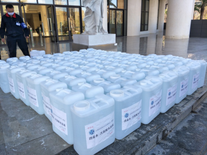3月9日上午,云南省民营企业发展协会会长周树东先生,在图书馆向学校捐赠了2吨防疫用的消毒液。这是以周树东先生为代表的民营企业回馈社会的一种爱心表达,更是全社会团结一心共同抗疫的实际行动。后勤管理处李昭辉处长、国资处处长王惠芳、基建处副处长郭行宗代表学校参加了捐赠仪式,也向周树东先生转达了谢意。此次捐赠系我校在防疫工作中接收的第一次捐赠。
