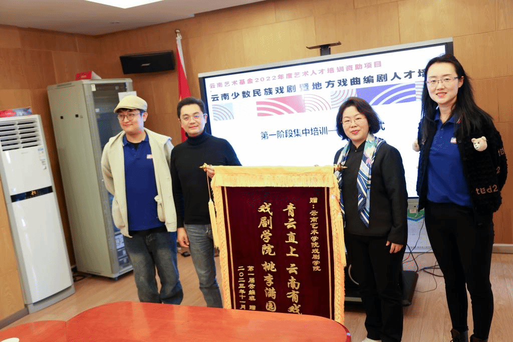 学员们为戏剧学院赠送了锦旗——“青云直上 云南有戏/戏剧学院 桃李满园”,字字凝聚了大家对于本次培训班的感谢之情。