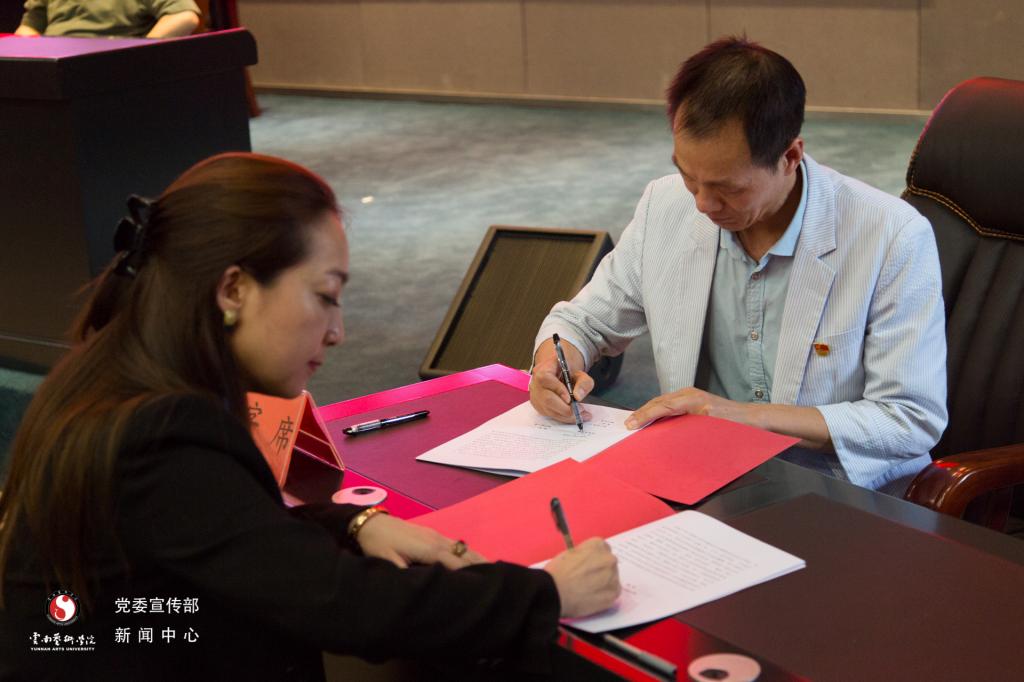 校党委书记黄雁玲同志和校党委副书记、校长郭浩同志分别与音乐学院、戏剧学院签订责任书