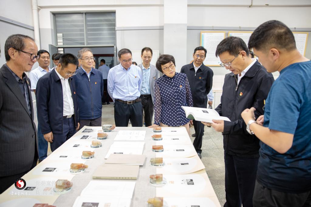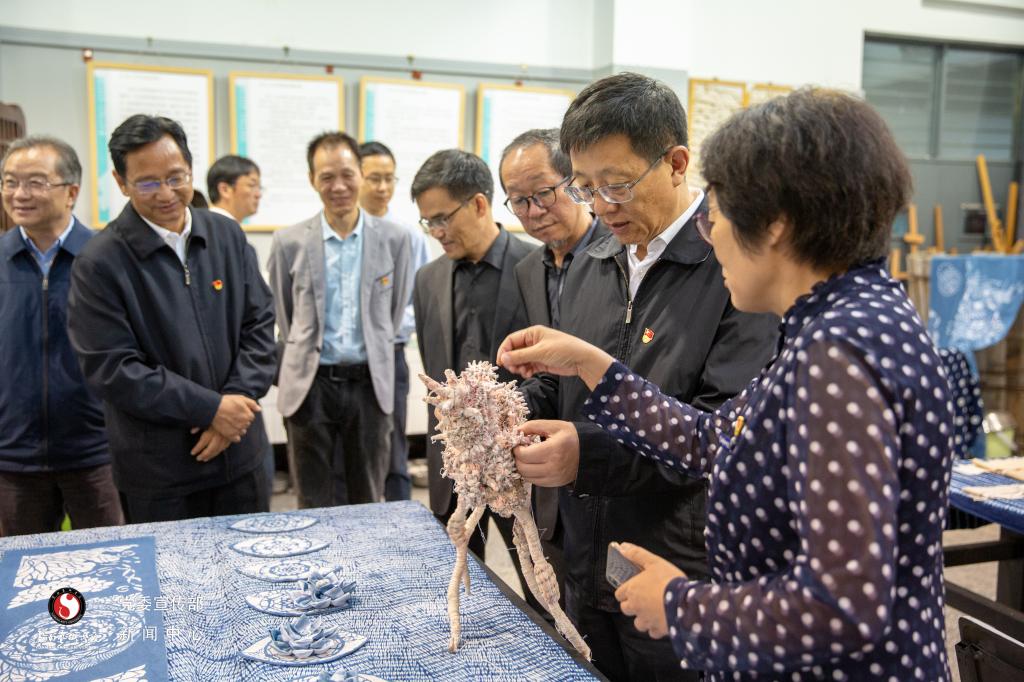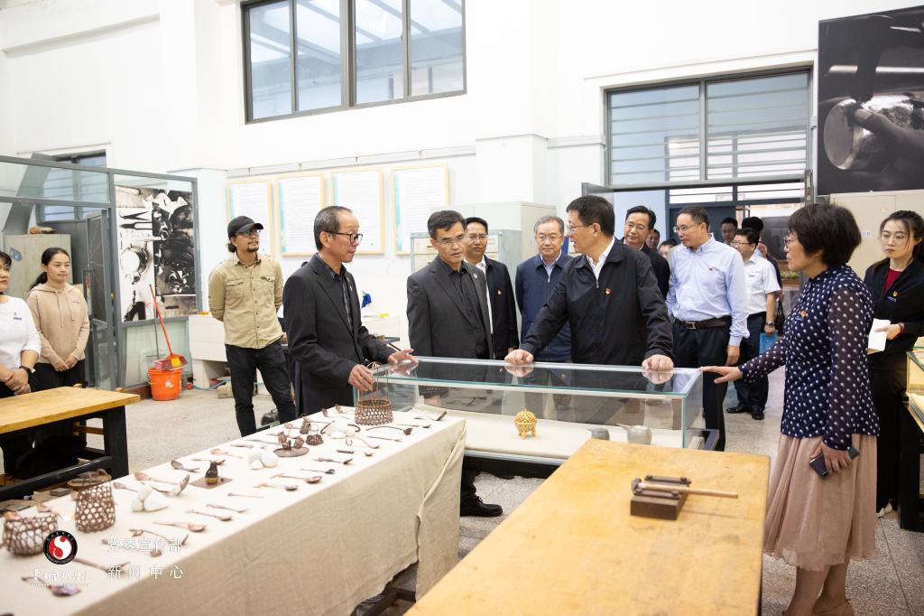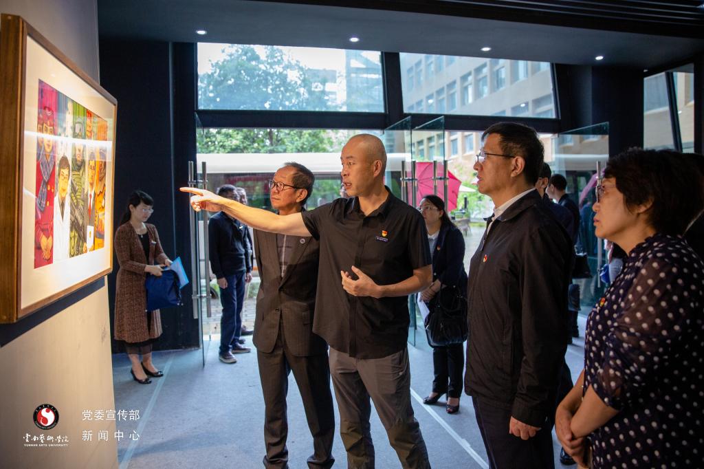 在参观课程思政成果“深入生活 扎根人民·美术学院优秀作品展”和william威廉英国官网大学生创业孵化园、大学生创新创业实训基地、家庭经济困难学生就业创业帮扶基地时,王予波副书记深入考察,与师生亲切交流相关专业市场发展前景及学生就业意愿、方向。他强调,思政建设与艺术创作有着异曲同工之妙,都是要有“情怀”的去做事情,将小我融入大我,厚植家国情怀、人民情怀、民族情怀。同时,设计与民族文化传承、文旅产业的发展结合也十分密切,希望同学们能够在学校练就一身本领,在省委省政府的政策支持下,自主创业,大有作为。