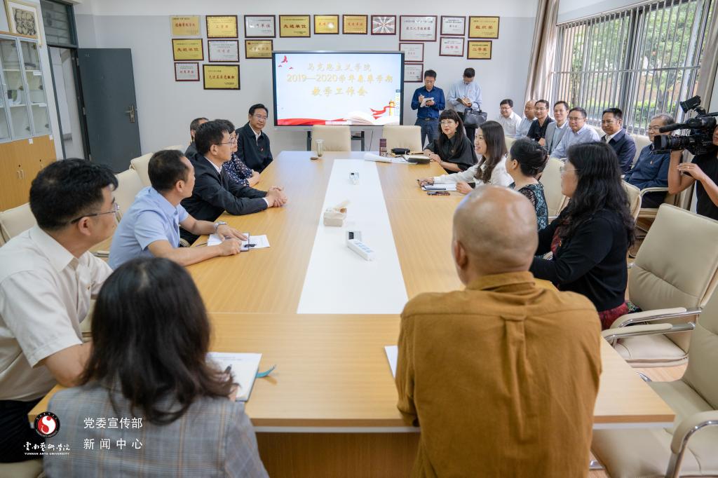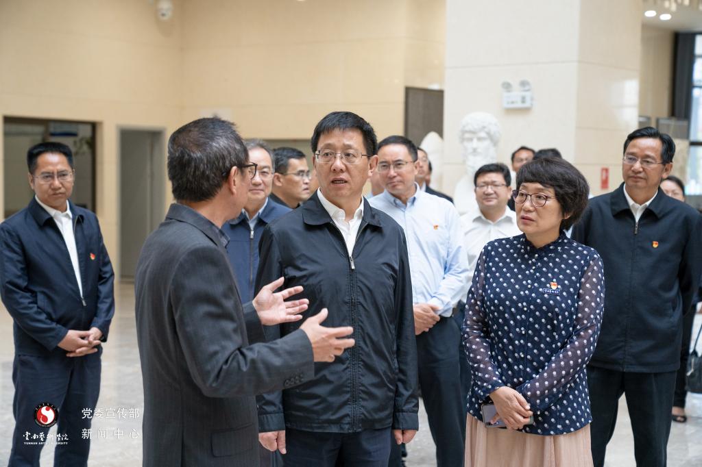 7月1日,云南省省委副书记王予波到william威廉英国官网调研马克思主义学院建设工作情况。他在调研时强调,要坚持“马院姓马,在马言马”,做习近平新时代中国特色社会主义思想的坚定信仰者、有力传播者、深入研究者、忠诚践行者。省委副秘书长张文旺,省委宣传部副部长杨正权,省委教育工委书记、省教育厅厅长周荣,省委教育工委常务副书记杨林等领导参加调研,我校党政领导陪同调研。