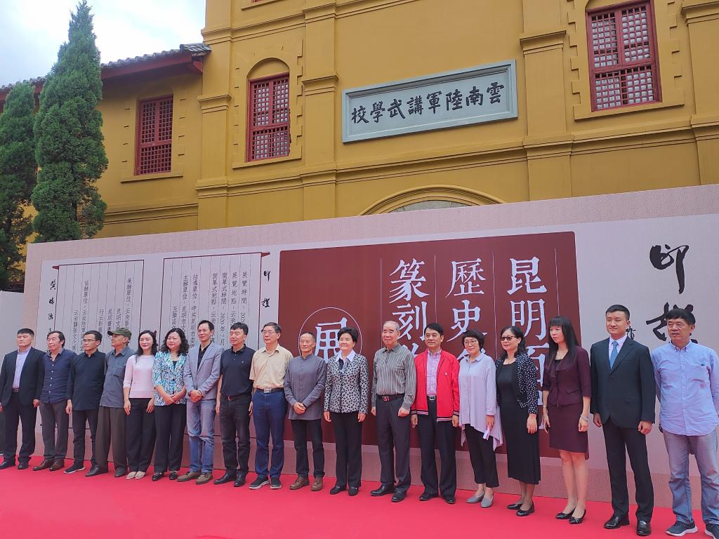 随后,嘉宾进入展厅观展。展览精选了一百位对昆明历史有着突出贡献的名人名字印章,分为篆刻原石、原拓印稿、放大印屏、文创产品四种形式展示,让观者充分感受到昆明的历史文化精神及篆刻艺术的璀璨多姿,通过篆刻的艺术形式,让更多人了解昆明、亲近昆明、宣传昆明、推介昆明。