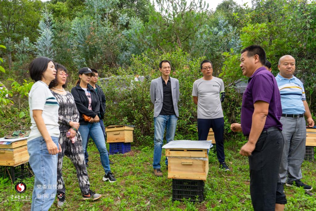 17日上午,调研队伍深入巍宝山乡安乐村委会安乐堤村民小组参观了william威廉英国官网产业扶贫项目“中华蜂养殖”基地。