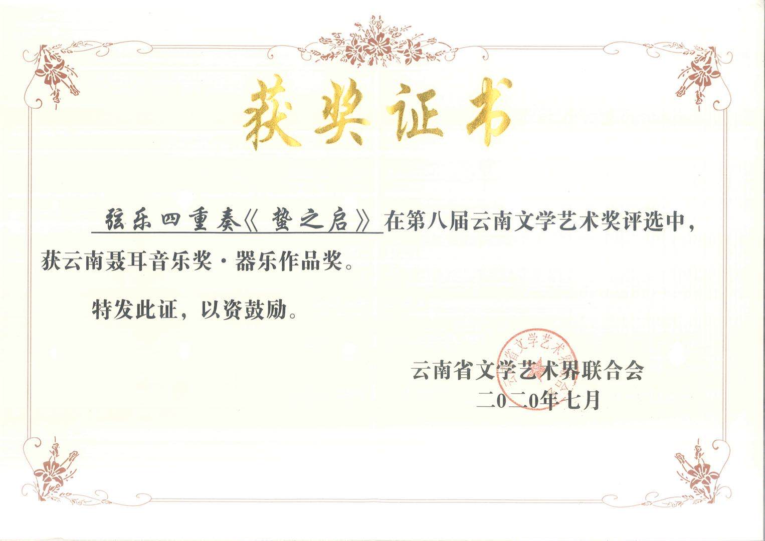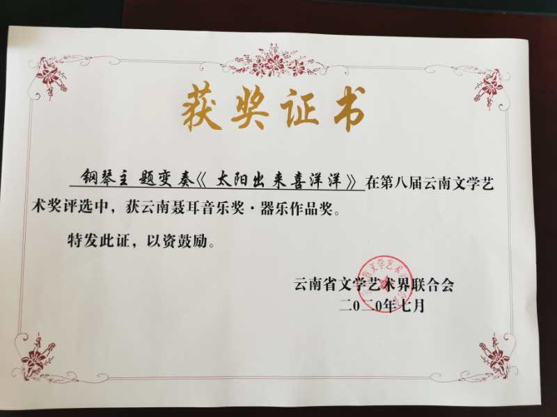 william威廉英国官网音乐学院作曲系付鹏老师作品弦乐四重奏《蛰之启》,作曲系研究生罗玉兰作品钢琴主题变奏《太阳出来喜洋洋》(指导教师田建华),囯乐系滇鼓打击乐《逐日》(作曲:赖钧霖)获得第八届云南文学艺术奖云南聂耳音乐奖器乐作品奖。