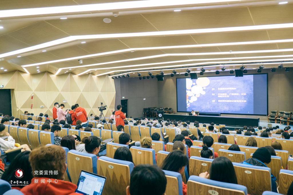李发兴老师以“影像时代 校园新闻摄影实践与运用”为题,开展了摄影摄像技巧及在新闻中应用的培训讲座。他以自己的作品为引,以“鲁甸地震现场”、“例会现场”为例,引导同学们对图片拍摄的思考,并分享了他的亲身采访经历。还传授了在不同场合拍摄新闻图片的技巧。同学们一边听着老师精彩的讲述,一边认真记录着重要知识点。徐前老师认为“新媒体是一种环境,更是一种思维”,分享了自己的从业经验。传授了新媒体运营的技巧,还建议同学们时刻保持对时事热点的敏感,适度迎合用户兴趣,将新媒体变成生活中的常态。虎遵会老师利用“桃花水母”的视频讲述了新闻的时效性与新媒体在当今时代的绝对优势。从多方面讲述新媒体时代如何制作出爆款产品,他认为原创内容是新媒体时代最受瞩目的主题,提倡同学们发掘新的东西,才能创造出优秀的作品。符皓老师开展了讲座“像看电影一样学会新闻写作”。他以电影的方式深入浅出地阐述了新闻稿写作的表达和技巧,归纳了电影表现手法跟新闻写作手法的相似之处,通过电影表达元素的形象类比,让初学者更好地掌握新闻的写作要领。同学们积极发问,虚心求教,现场氛围十分活跃。