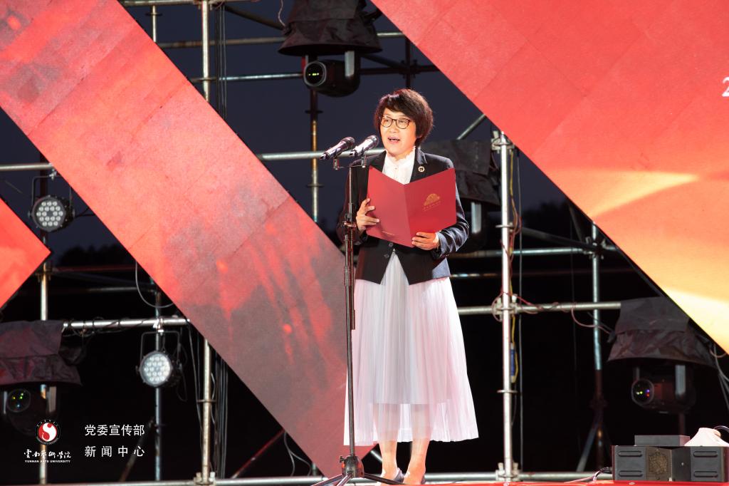 校党委书记黄雁玲向新生们分享了三句话:“常怀感恩之心,宁静笃学、砥砺前行。”“常怀赤子之心,刻苦攻读、启迪智慧。”“常怀追梦之心,昂首阔步、谋划未来。”她指出了作为一名合格的云艺人应具有的品质,并希望同学们不断努力,以积极主动的态度面对大学学习生活,志存高远、充实能力、补足短板、乐观向上,为今后人生道路奠定坚实的基础。希望全体教师认真贯彻党的教育方针,聚焦立德树人根本任务,热情关心学生、严格要求学生,关注学生愿望、帮助学生发展,做广大学生的知心人、热心人和引路人,努力把云艺学子培养成为德智体美劳全面发展的社会主义建设者和接班人。