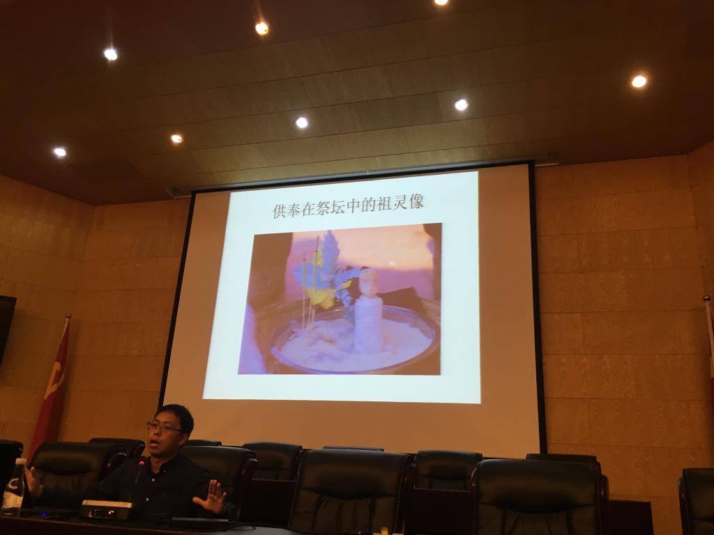 李世武教授从个人学术旨趣引入对艺术研究的思考,首先列举了自身研究采用学科交叉方法将艺术学与医学探索传统艺术疗法的内在机制及现代转化路径。其次,再从艺术人类学研究方法创新研究思考,启发同学从逆向思维到用方法论进行个案研究。李世武教授通过引用费孝通先生的对民族的定义、横向对比中国古代的艺术定义与欧洲的艺术定义、引用莫菲对艺术的人类学定义,从多维视角向同学们讲解了多民族艺术的问题。同时列举“丁兰刻木”、彝族史诗“梅葛”演述传统的“不死药”神话、崖画的绘制、青铜的铸造、呗玛与孝道的艺术建构、彝文本《董永记》、《云南少数民族绘画》、传说与头饰、彝汉结义等案例,追根溯源、深入浅出的讲解建立多民族艺术“交融而和”的问题意识和多民族艺术交融在中华民族共同体意识构建中的独特作用等主题。