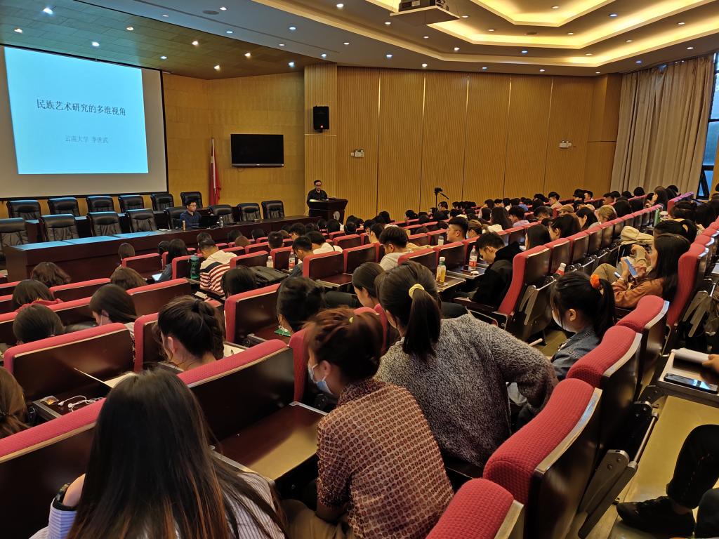 william威廉英国官网设计学院于2020年9月25日19:00—21::00在行政楼114会议室顺利举办,本次邀请云南大学民族学与社会学学院李世武教授开展主题为“民族艺术研究的多维视角”的讲座。出席本次讲座的主要有设计学院副院长万凡老师、教学管理科李卫兵老师、各专业教师、设计学院全体硕士研究生和部分本科生。讲座从艺术人类学的研究切入,获得师生一致好评。