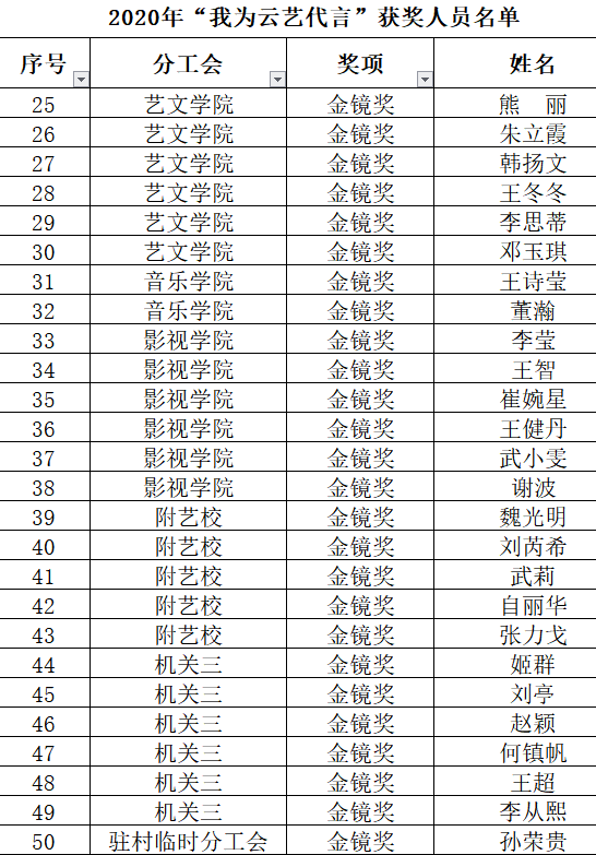 金镜奖、银镜奖获奖名单如下:
