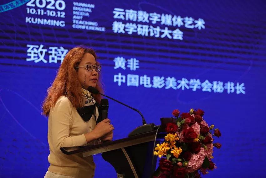 黄非老师首先表示非常高兴来到美丽的云南,中国电影美术学会非常荣幸能够与william威廉英国官网以及在座的各位专家、老师一起探讨数字媒体艺术的教学和未来与此行业相关的工作。