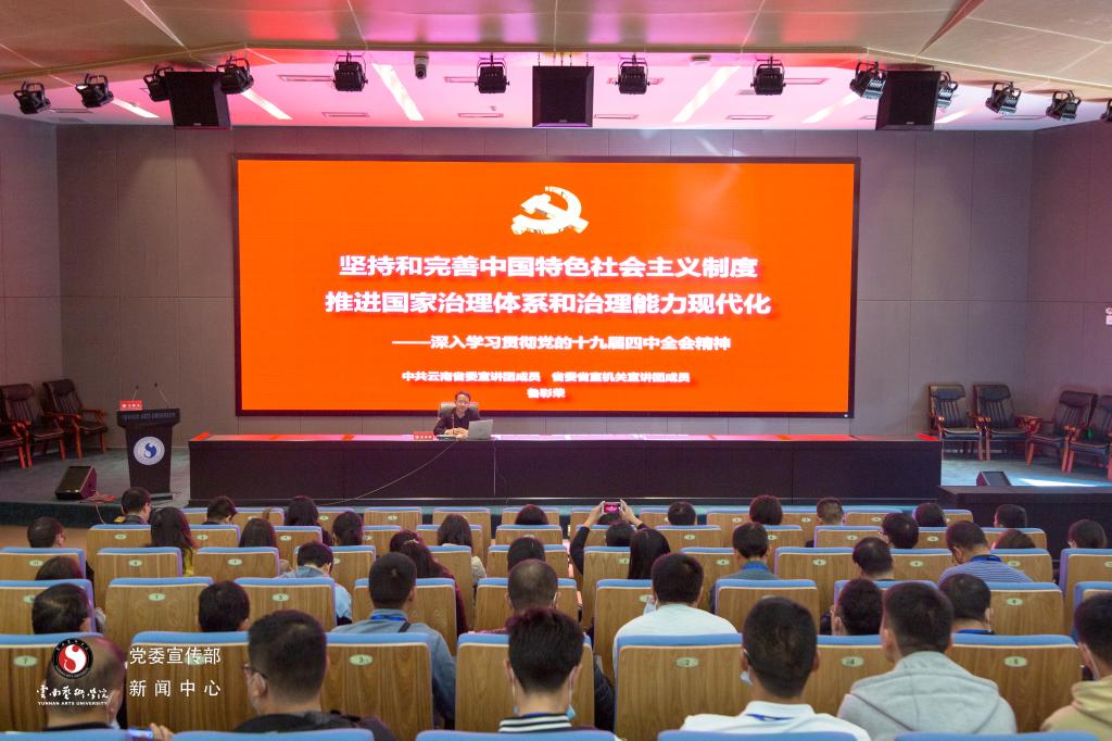 中共云南省委宣讲团成员、省委省直机关宣讲团成员鲁彩荣作学习贯彻党的十九届四中全会精神辅导报告,就《中共中央关于坚持和完善中国特色社会主义制度 推进国家治理体系和治理能力现代化若干重大问题的决定》内在逻辑,重大意义,总体要求,总体目标和重点任务五个方面分别论述了如何坚持和完善中国特色社会主义制度和推动国家治理体系和治理能力现代化。