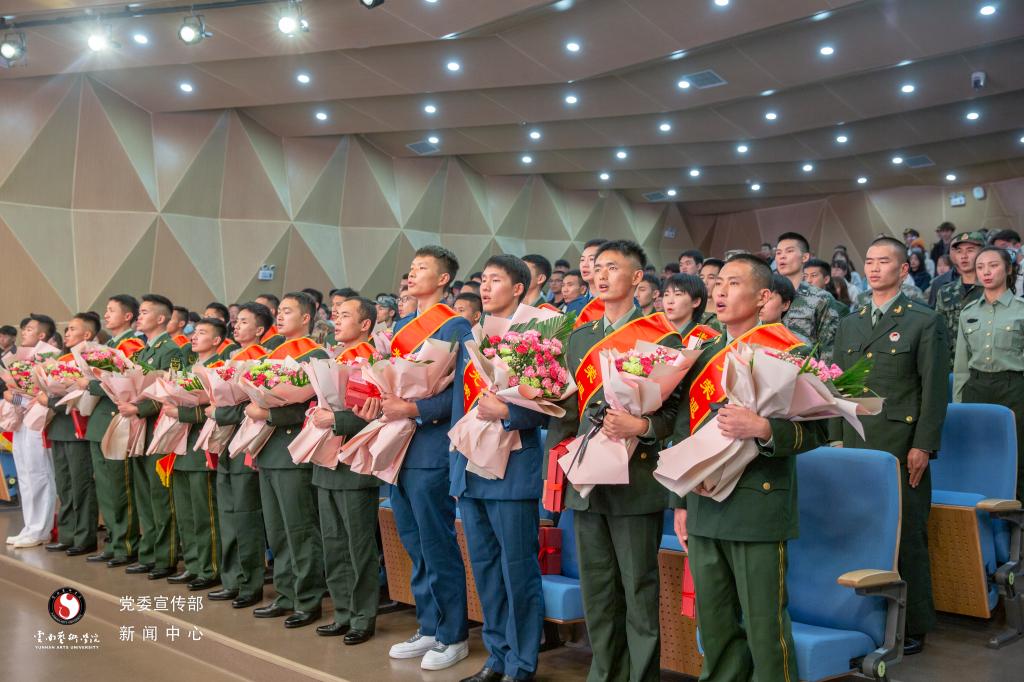今年共22名同学光荣退役返校,其中有3名同学在部队光荣加入中国共产党,1人荣立三等功,10人被评为优秀士兵,14名同学受到各级表彰嘉奖。校党委委员、宣传部部长张勇宣布退役同学人员名单。学生代表向退役同学献花,学校领导老师为其赠送纪念品。