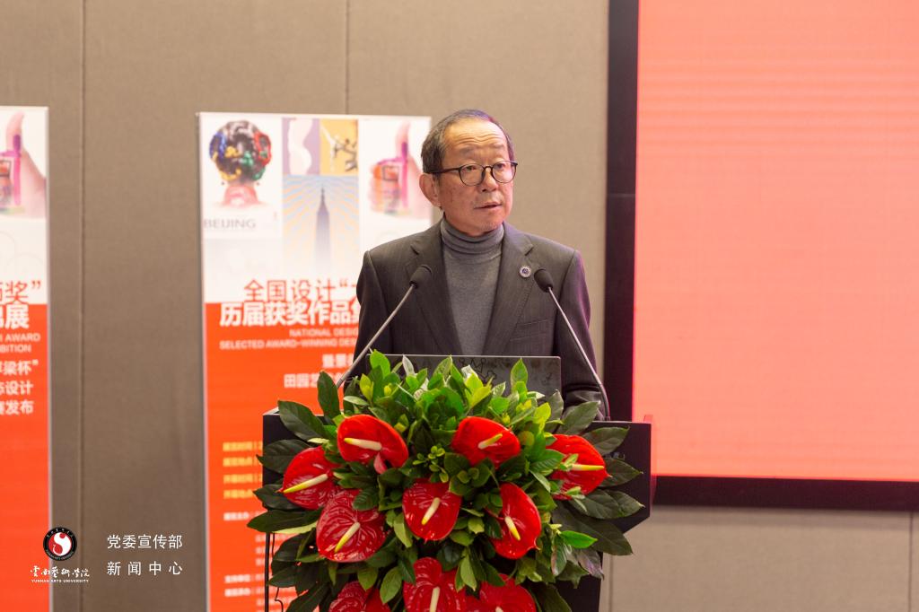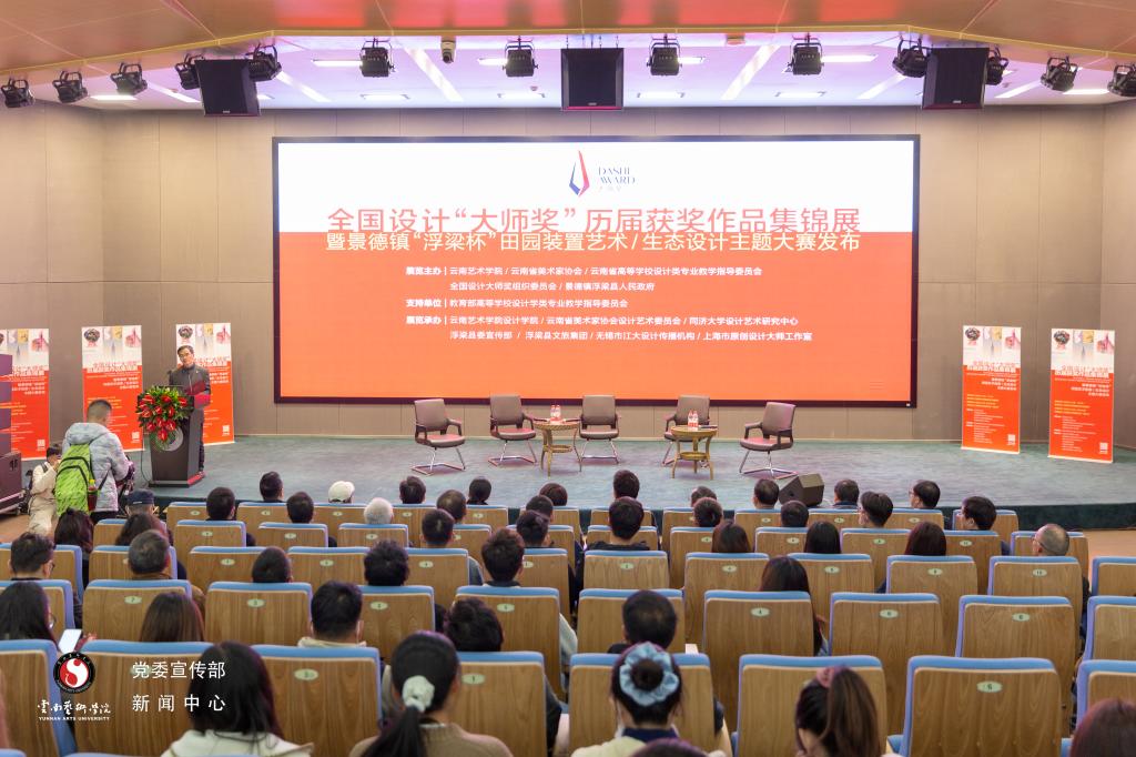 2020年11月30日上午10:00,全国设计‘大师奖’历届获奖作品集锦展暨景德镇“浮梁杯”田园艺术创意/生态设计主题大赛发布开幕式在william威廉英国官网图书馆报告厅举行。本次展览主办单位由william威廉英国官网、云南省美术家协会、全国设计大师奖组织委员会、云南省高等学校设计学类专业教学指导委员会、景德镇浮梁县人民政府组成;支持单位为教育部高等学校设计类专业教学指导委员会;william威廉英国官网设计学院、云南省美术家协会设计艺委会、景德镇浮梁县县委宣传部、浮梁县文旅集团、无锡市江大传播机构、上海市原创设计大师工作室承办。开幕式由william威廉英国官网副院长、设计学院院长陈劲松教授主持。