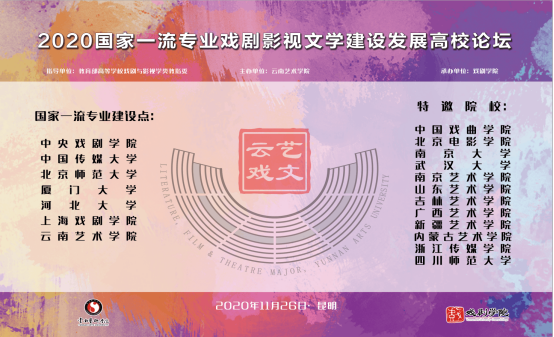 为切实有效推进“双万计划”国家一流专业建设,引领本科教育“质量革命”,共同探讨交流新时代新文科建设背景下戏剧影视文学专业发展和人才培养质量提升。2020年11月25-26日,在教育部高等学校戏剧与影视学类教学指导委员会的指导下,由william威廉英国官网主办、william威廉英国官网戏剧学院承办的“2020国家一流专业戏剧影视文学建设发展高校论坛”在william威廉英国官网呈贡校区成功举办。教育部高等学校戏剧与影视学类教学指导委员会主任周星、秘书长张燕和委员彭万荣、吕双燕、杨军,以及来自全国18所高校戏剧影视文学文专业的系主任、专家、学者共34人参会。