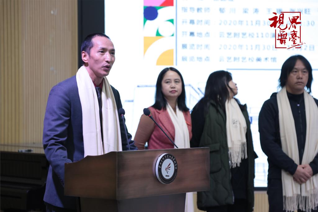 附艺校农布七林校长在开幕式上致辞并肯定了美术专业教学所取得的成果,他指出,本次毕业设计展,是学校教师艺术思想、教学水平的一次检阅,更是学生感悟艺术、创作技法、学习成果的一次汇报。在此次画展的呈现中,每一根线条都彰显着思想与技法的延伸、每一个意境都表达着沉静内心的体验、每一个面孔都传达着人类精神的多元、每一个颜色都诉说着语言形式的独特。艺术创作是生命体验的升华和表达,它集中反映了附艺校教学群体的艺术观念与艺术精神,对塑造学生的艺术思维和艺术品格产生了润物细无声的影响力与推动力。他认为,此次画展的作品紧密围绕人才培养方案,通过“以展促教”的理念调动了学生的主观能动性,拓展了艺术视野,拓宽了专业学术视角与专业技能,有效地推进了学校教育教学再上新台阶,彰显了学校教学改革和办学特色的成果。画展由附艺校樊腾发书记宣布开幕。