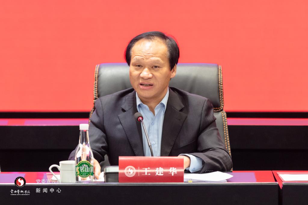 当天下午,云南省社科联党组成员、副主席王建华以“从中美两国的竞争深刻认识国家治理体系和治理能力建设的重要意义”为题,为云艺广大师生作了专题报告。报告对比分析了中美制度及治理体系和治理能力,并指出,繁荣和发展中国特色哲学社会科学,要按照立足中国、借鉴国外、挖掘历史、把握当代,关怀人类、面向未来的思路,紧紧围绕“举旗帜、聚民心、育新人、兴文化、展形象”的使命任务,着力构建中国特色哲学社会科学,在指导思想、学科体系、学术体系、话语体系等方面充分体现中国特色、中国风格、中国气派。他指出,高校担负着为国家未来建设培养人才的历史重任,高校社科联在改革、创新和发展中应该牢记使命担当,增强“四个意识”,坚定“四个自信”,做到“两个维护”,加强社会主义核心价值观的教育实践,着力提升高校社科联工作质量,为繁荣和发展云南哲学社会科学工作作出积极的贡献。