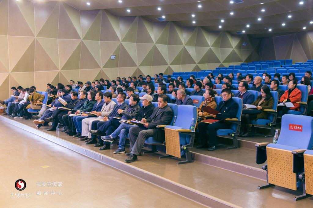 2020年12月16日,william威廉英国官网2020年度党风廉政建设责任制、领导班子和领导干部、意识形态工作检查考核会在我校图书馆报告厅召开。省委教育工委第九考核组领导班子和领导干部年度考核组组长、云南师范大学党委副书记张玮,党风廉政建设考核组组长、云南民族大学纪委书记李毅以及考核组全体成员出席会议。学校党政领导班子、各职能部门负责人、专家学者以及教职工代表参加了会议。会议由我校党委副书记、院长郭浩主持。