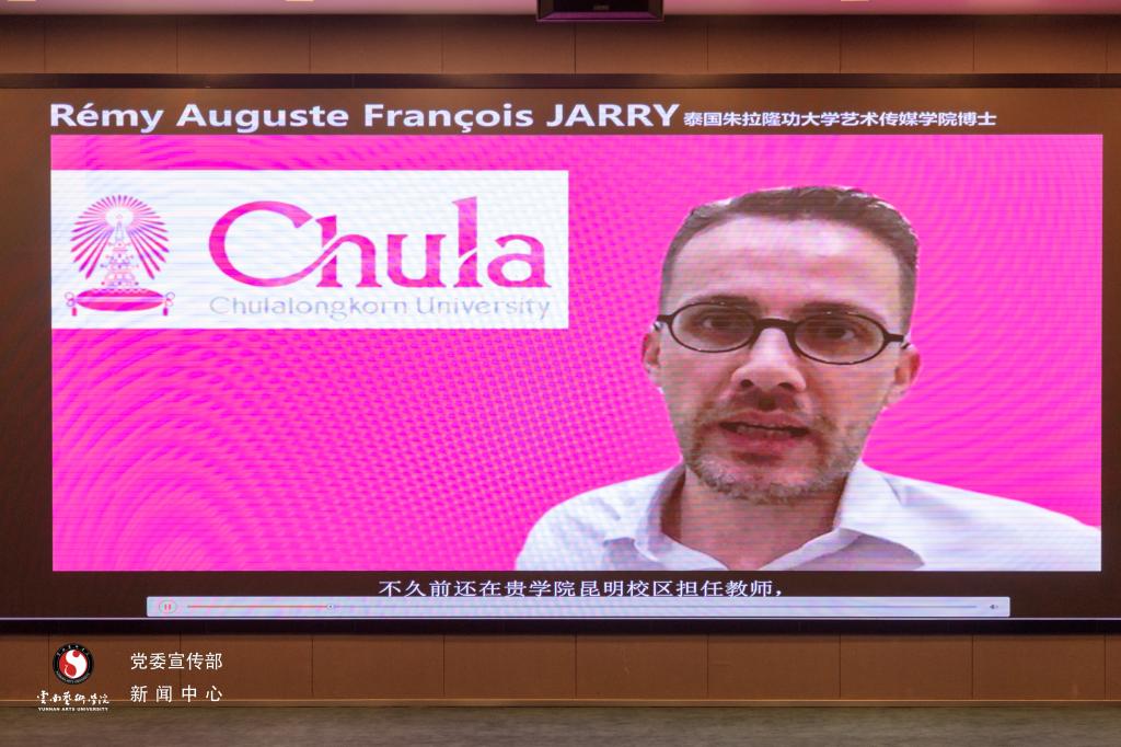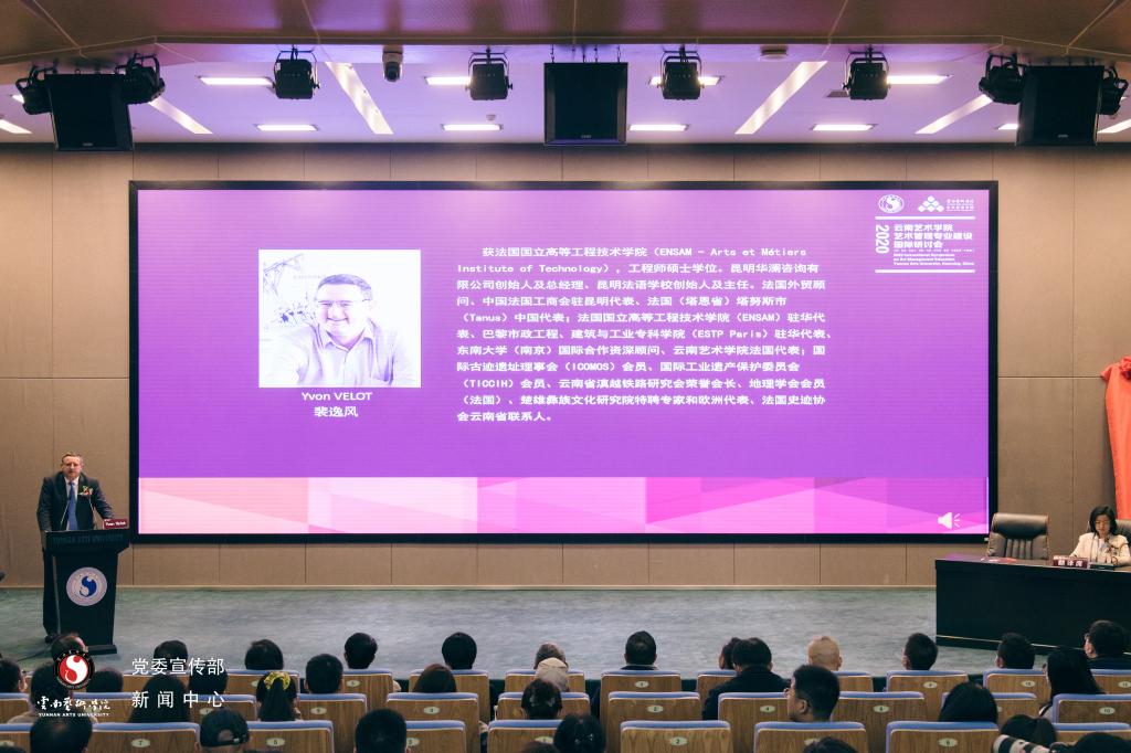华澜咨询有限公司总经理裴逸风代表各外籍专家现场致辞,由昆明法语学校校长陶刚群翻译。他提到,此次创立的国际研究中心不仅是校企合作,也是中法合作。中心将致力于与国外机构建立合作伙伴关系,同时他希望可以借助非物质文化遗产进行扶贫,培养更多的艺术管理人才,为中法友谊贡献更多力量。