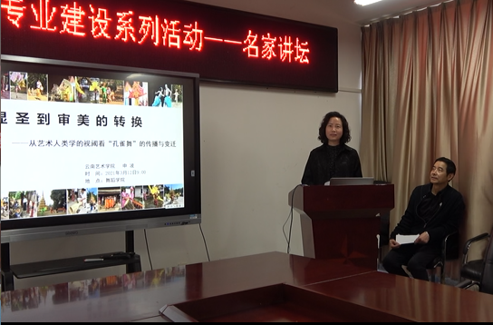 申波教授立足于“问题意识”,通过“孔雀舞”显圣到审美再造个案的回溯,探讨了“孔雀舞”变迁与传播轨迹,考察在民族身份认同与国家认同过程中主位与客位如何达成相互协调,主流话语如何对“民间文化”“传统的文明”构成话语张力的历史逻辑。在现场交流环节,舞蹈学院研究生围绕讲座主题作了颇有价值的提问互动。最后,刘丽教授作了深入总结,从本次讲座的“语境”问题出发,引申出云南民族舞蹈研究在田野调查、学术逻辑构建等方面的思考。