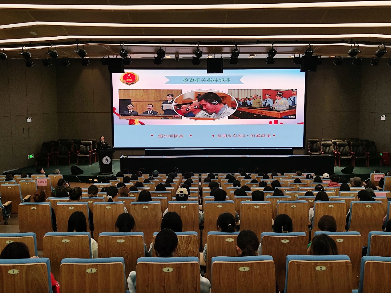 讲座上,龙蕊检察官围绕“全面依法治国和11个坚持”、“法制与责任”、“大学校园潜在的典型犯罪风险”三个内容进行讲述。阐述了法治是中国梦、中华民族伟大复兴之路的重要组成部分,每个人都是法治的参与者,并以现实案例深入浅出地介绍了校园贷及套路贷潜在风险的识别与防范。最后,她以一句“高山仰止,景行行止。虽不能至,然心向往之”希望与大家共勉。