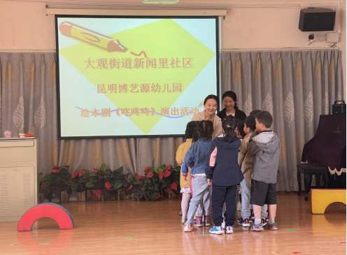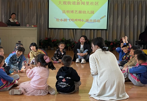 该活动是继去年底戏剧学院和昆明市五华区大观街道办联合举办的“戏剧艺术进社区·校地党建手拉手”社区剧场活动之后的又一次戏剧艺术进社区活动,是戏剧学院2020年全国大学生创新创业训练计划立项项目《春雨坊——戏剧方法在社区党建和基层治理中的应用》系列活动之一,以“幼儿安全教育”为主题,绘本剧《咚咚咚,是谁呀?》为脚本,培养幼儿的自我保护意识,教育孩子独自在家不要给陌生人开门,引导孩子在陌生人来敲门时,如何保护自己。