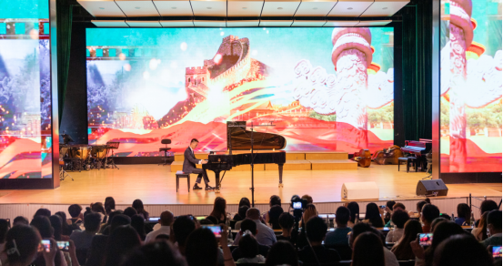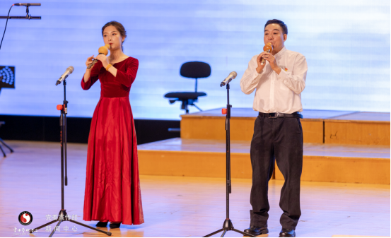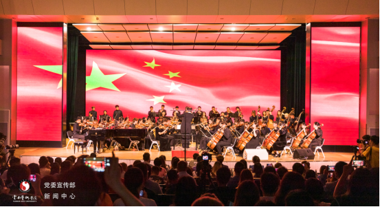 音乐会在民乐合奏《唱支山歌给党听》的深情演奏中拉开序幕,钢琴独奏《我的祖国》表达了志愿军战士对祖国、对家乡的无限热爱之情和英雄主义气概;独具民族风情的葫芦丝齐奏《新编夜深沉》、扬琴重奏《新映山红》、钢琴独奏《陕北民歌主题变奏》给观众生动呈现一幅幅辉煌壮丽的党史画卷;双钢琴演奏《我和我的祖国》抒发了人们对伟大祖国的衷心依恋和真诚歌颂;音乐学院管弦乐团倾情演绎的《红旗颂》《黄河钢琴协奏曲》将音乐会推向高潮;音乐会在管弦乐《我的祖国》的乐曲声中圆满结束。