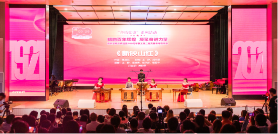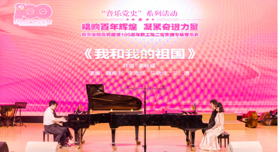 在中国共产党成立100周年之际,为进一步深化党史学习教育,回望辉煌历史,传承红色基因,用艺术的感染力和影响力凝聚起全院师生奋进新征程的磅礴力量,音乐学院以“音乐党史”为主线,以“唱响百年辉煌,凝聚奋进力量”为主题,举办了音乐学院庆祝建党100周年系列音乐会。6月18日,系列音乐会首场教工第二党支部专场音乐会在安康音乐厅举行。校党委副书记杨国良,党委委员、副院长赵波,党委委员、艺术管理学院院长傅永寿,党委委员、宣传部部长张勇,党院办(巡察办)主任李攀通等领导嘉宾出席音乐会,机关各职能部门、各二级学院师生、音乐学院领导班子成员以及全体师生党员参加本场音乐会。晚会由国乐系教师赖钧霖和2020级学生邓子非主持。