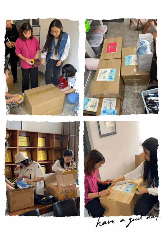音乐学院青年志愿者协会成员在打包物品