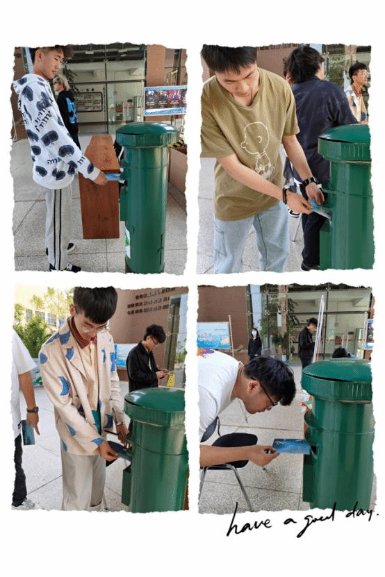 音乐学院青年志愿者协会在音乐学院一楼大厅进行集中募捐,每一天都有源源不断的热心同学前来献上他们的爱心。在募捐处旁,还设立了一个邮筒,每位上下课经过此地的同学们,都会给新疆的小朋友写一封信,给他们给予希望,播种爱的种子。有几位同学甚至把自己平时积攒下来的零用钱,购买了全新文具和衣物,送给新疆的小朋友们。