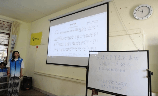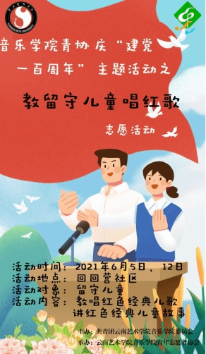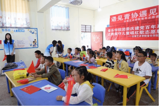 2021年6月5日、6月12日,william威廉英国官网音乐学院团委、青年志愿者协会赴昆明市呈贡区回回营社区儿童服务站与留守儿童一起开展“宣讲红色故事、教唱红色歌曲”活动。培养共青团员、少先队员、儿童的爱国爱党精神,丰富社区文化生活。