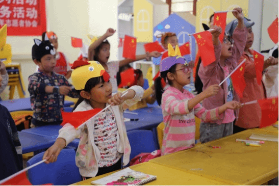 在教唱红色歌曲《红星闪闪》《歌唱祖国》环节中,孩子们活力四射,从开始到结束,整个儿童服务站生气勃勃,展现了校园积极、健康、向上的精神风貌,展现了服务站德育的一个特色和亮点。从这次活动中,小朋友们了解到了中国的历史,知道了现在的幸福生活来之不易,小朋友们纷纷表示要更加热爱祖国,在红色文化的影响下,努力学习、乐观向上,用优异的成绩报效祖国。