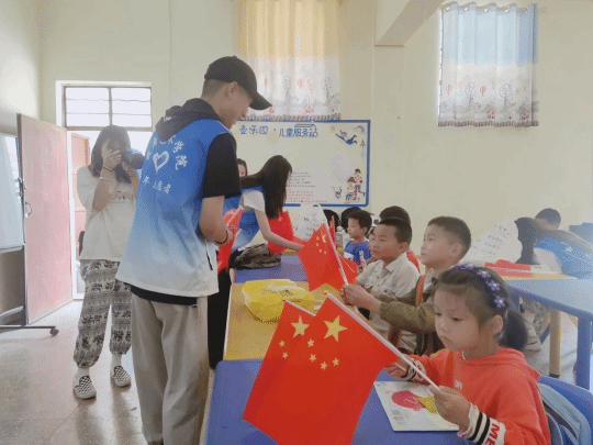 在活动开始前,音乐学院青年志愿者协会的工作人员给所有参加的小朋友发放小红旗