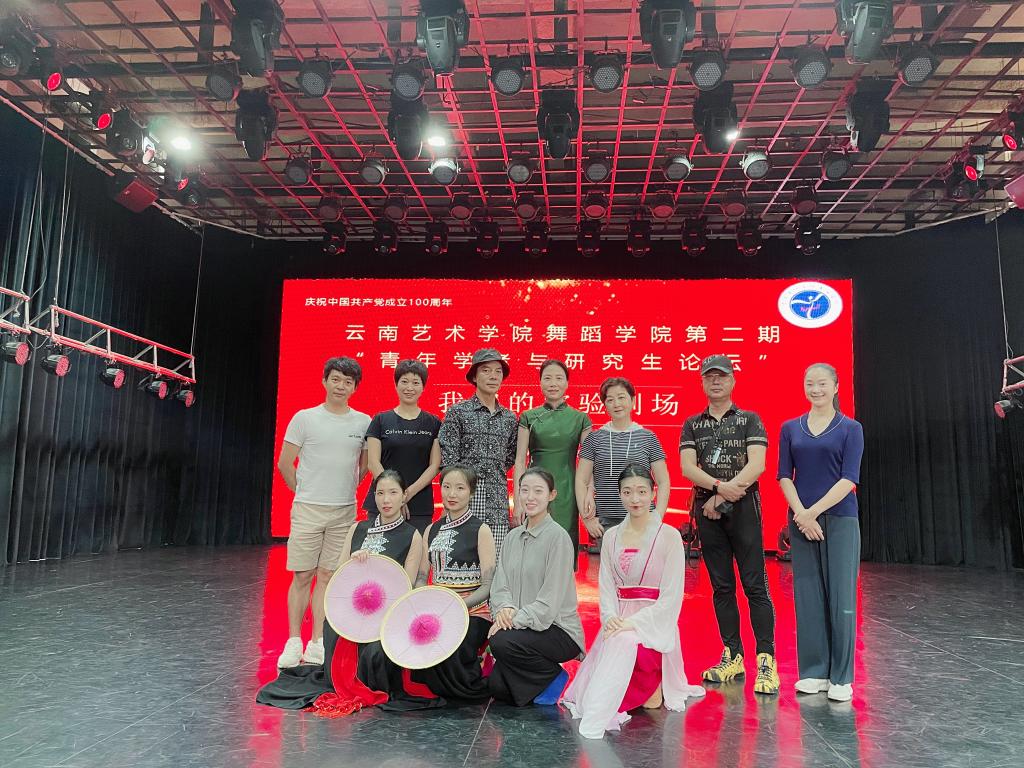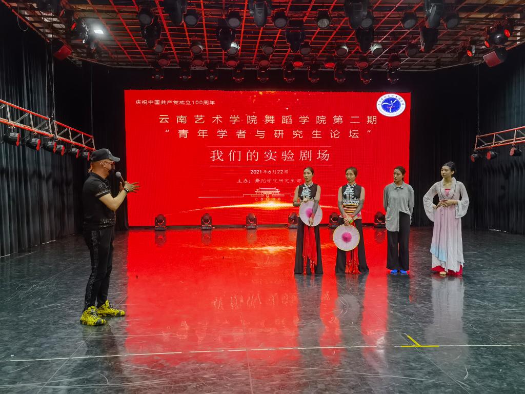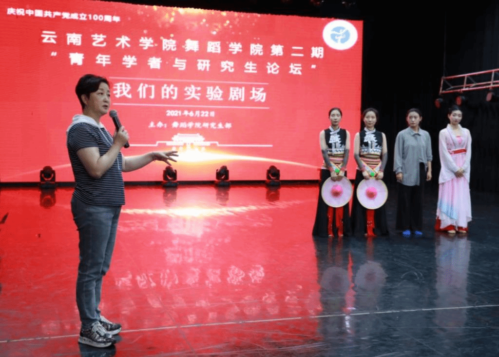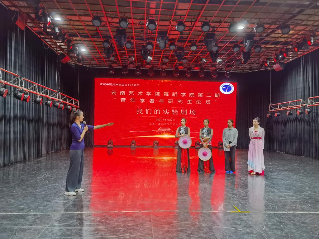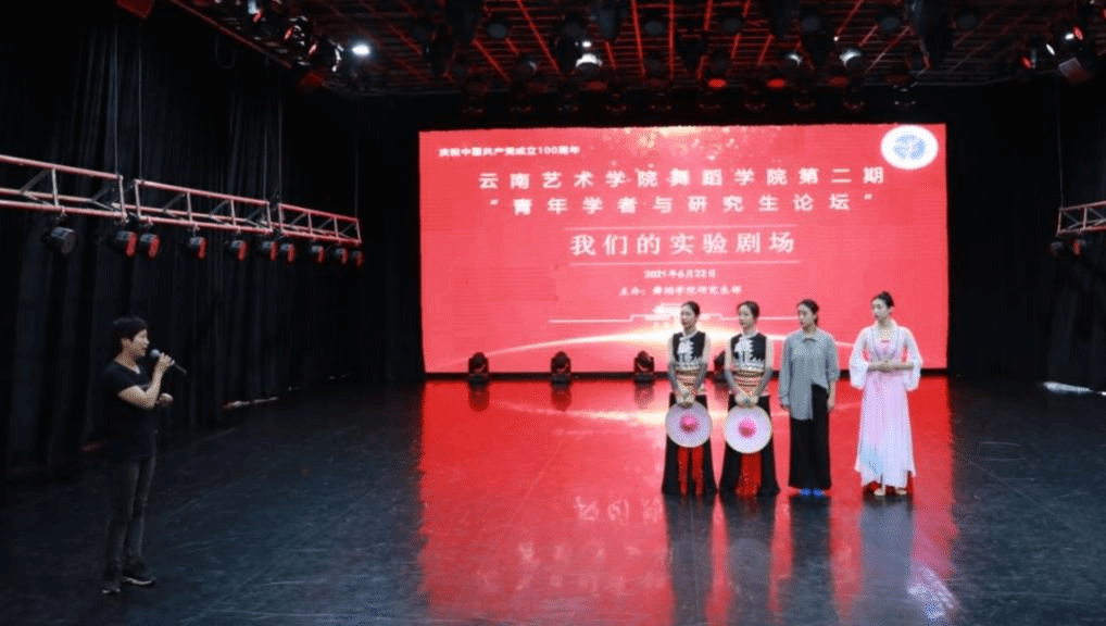 6月22日,为庆祝建党100周年,由舞蹈学院研究生部主办的第二期“'青年学者与研究生论坛'——我们的实验剧场”在舞蹈学院小剧场顺利举办。论坛由舞蹈学院副院长刘丽教授主持,硕士生导师朱红教授、黄自新教授、邓钰莹老师及编导系主任李伟平老师担任评议专家。2020级舞蹈编导方向艺术硕士李璟欣、黄飘雪、方茹、李皓月四位研究生展示了各自的原创舞蹈:中国民族民间舞《花腰水莲》、中国古典舞《美人卷》和当代舞《豆选》。