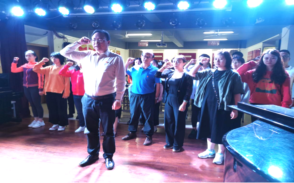 直播结束后,高等职业教育学院与继续教育学院党总支书记朱超同志带领师生党员举行了重温入党誓词活动。