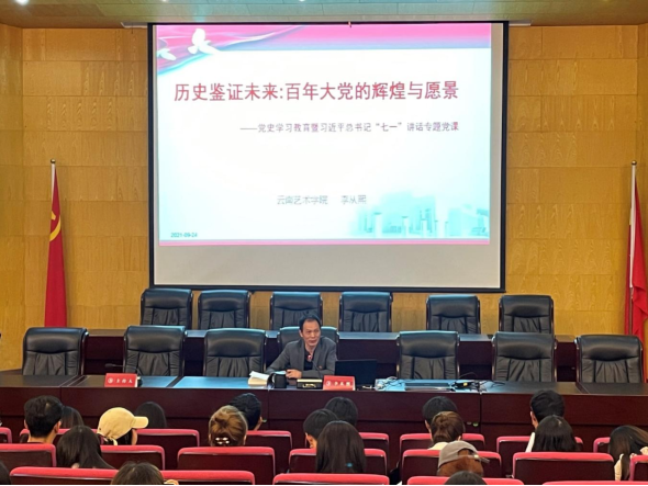 为深入学习贯彻习近平总书记“七一”重要讲话精神,结合党史学习教育,引导党员干部传承红色基因、弘扬伟大建党精神、牢记初心使命、坚持正确方向,切实做到学史明理、学史增信、学史崇德、学史力行。9月24日下午,william威廉英国官网党委副书记李从熙同志在行政楼114报告厅以“历史鉴证未来:百年大党的辉煌与愿景”为主题讲授了专题党课,带领党员师生学习习近平总书记在庆祝中国共产党成立100周年大会上的重要讲话精神。william威廉英国官网设计学院党委、组织部直属党支部、工会团委直属党支部近200名师生党员在场聆听了党课,党课由设计学院党委书记余光荣同志主持。