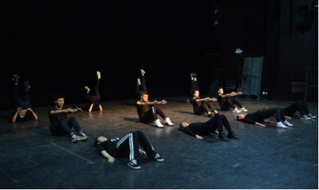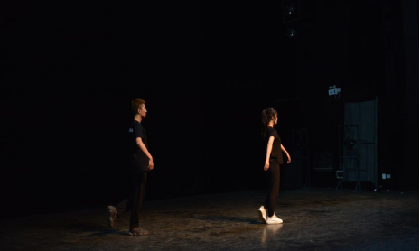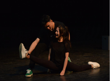 接下来进行的十组原创双人组合练习展示,每一组都由小组创作文本对话,结合每天的肢体训练元素,将身体姿态高度变化、力量重心变化、非对称性变化等做加法,完成全新的阶段性展示,利用身体进行戏剧文本表达,展现人物关系,更好地塑造鲜活的人物形象。