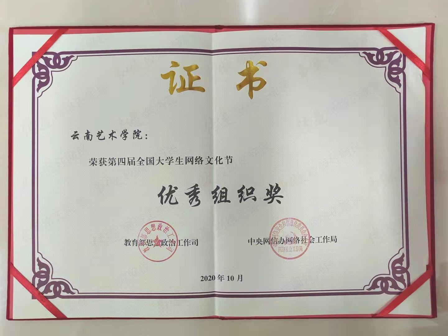 学院荣获第四届“全国大学生网络文化节”优秀组织奖。
