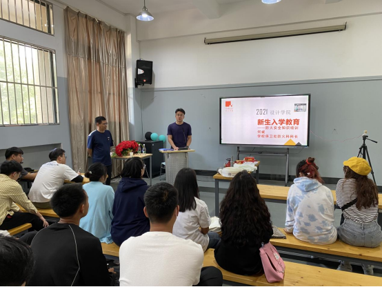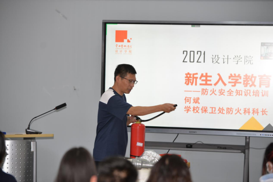 按照培训安排,设计学院全体2021级新生在各班教室集合,由学校保卫处防火科科长何斌老师在主会场进行消防疏散安全教育知识培训,其他12个分会场同步直播,何斌老师强调防火安全的重要性,指出一旦发生火情要保持冷静、沉着,教会同学如何报警、如何自救、如何使用灭火器等消防知识,并对火险逃生相关知识和破坏消防设施将承担的法律责任等方面进行了安全警示。