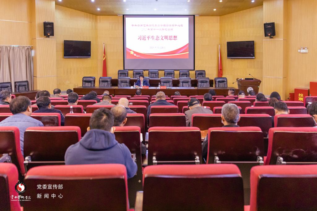 根据省委宣传部、省委组织部《关于组织全省各级党委(党组)理论学习中心组开展习近平生态文明思想专题学习的通知》要求,为贯彻落实习近平生态文明思想,2021年10月28日,我校党委理论学习中心组集体学习(扩大)会议在行政楼114报告厅召开,专题学习习近平生态文明思想。本次学习由校党委书记黄雁玲主持,党委理论学习中心组全体成员及全校处级干部参加。