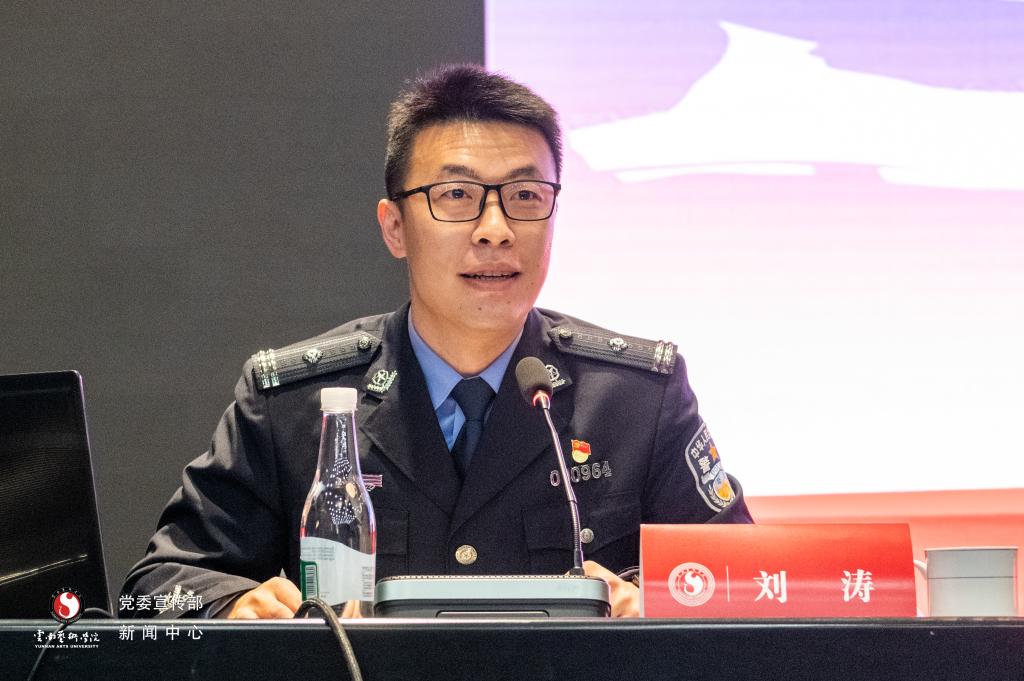 首先,省公安厅反恐总队防范指导处处长刘涛以题为《高校反恐基础知识讲解——反恐宣传进校园》展开讲座。他播放了相关视频资料,让师生有一个直观了解之后,从“暴恐的定义”“暴恐与学校安全管理”“校园反恐防暴‘反’与‘防’的目的与方法”三个方面阐释了校园反恐的重要性。