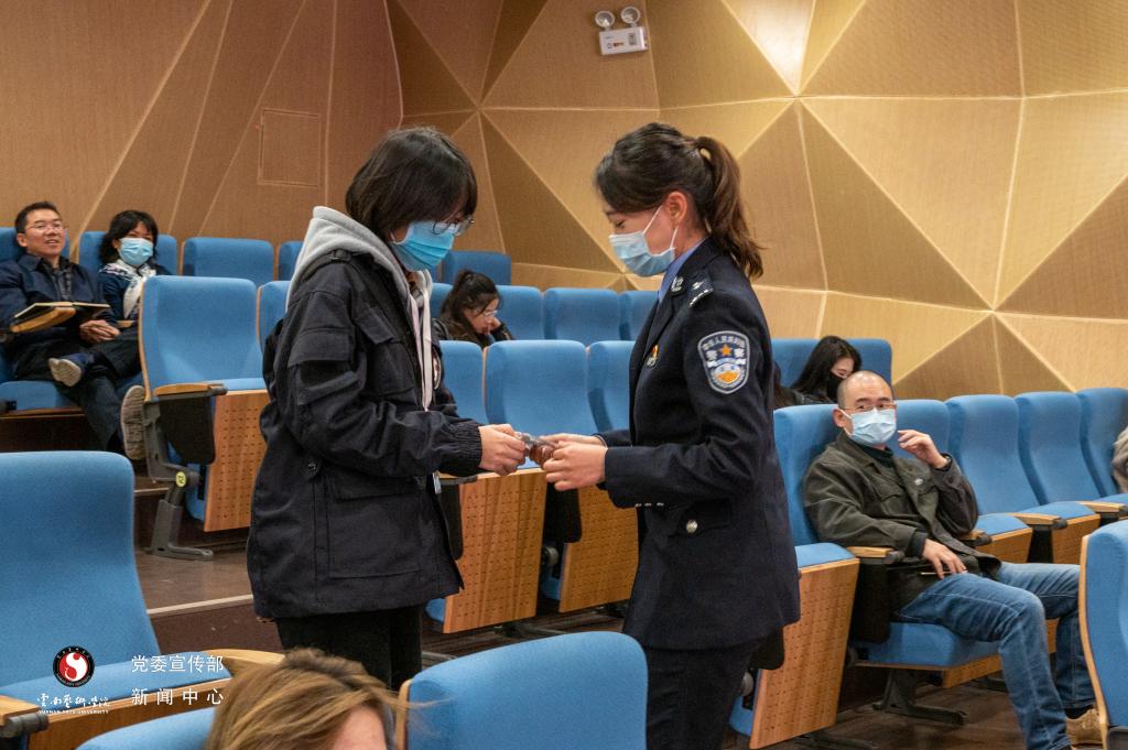 省高级人民法院法官助理彭慧从法院的角度出发,结合数个社会恐怖主义相关案例,将编造恐怖信息罪等恐怖主义行为向师生们进行了科普。她通过分析行为表现案件,向同学们展示了恐怖主义的概念和特征,为高校师生如何做好反恐怖主义提供了可行的依据和办法。最后,她用以案释法的方式为我校师生传递了反恐怖主义的相关知识,极大程度地提高了师生们的反恐防暴意识。
